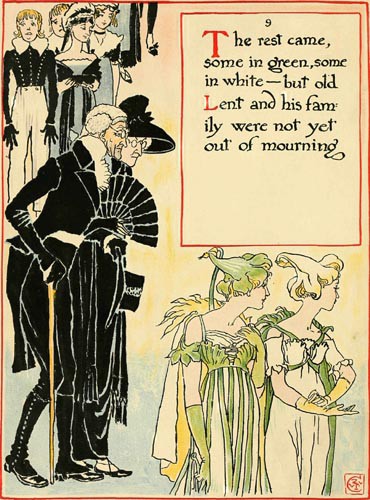 The rest came, some in green, some in white—but old Lent and his family were not yet out of mourning.