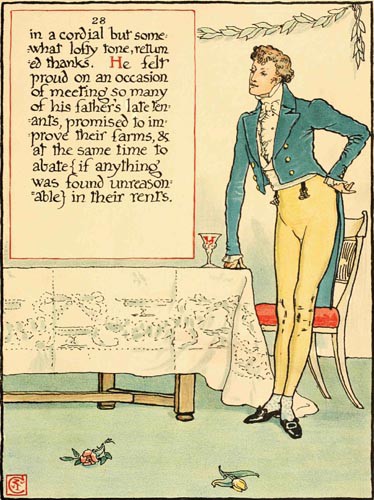 in a cordial but somewhat lofty tone, returned thanks. He felt proud on an occasion of meeting so many of his father’s late tenants, promised to improve their farms, & at the same time to abate {if anything was found unreasonable} in their rents.