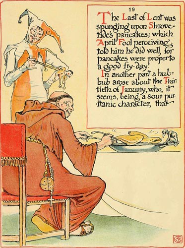 The Last of Lent was spunging upon Shrovetide’s pancakes; which April Fool perceiving, told him he did well, for pancakes were proper to a good fry-day.