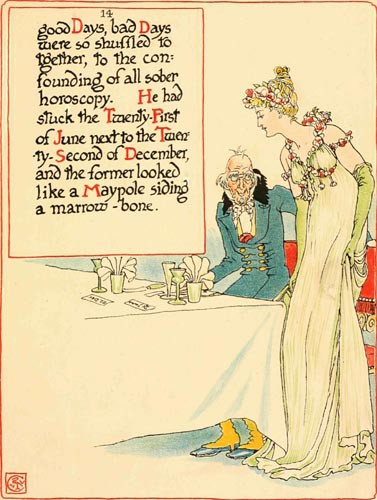 good Days, bad Days were so shuffled together, to the confounding of all sober horoscopy. He had stuck the Twenty-First of June next to the Twenty-Second of December, and the former looked like a Maypole siding a marrow-bone.