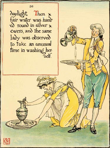 daylight. Then fair water was handed round in silver ewers, and the same lady was observed to take an unusual time in washing herself.