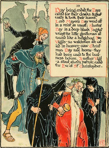 Lord Mayor’s Day went off in a mist as usual; Shortest Day in a deep black Fog that wrapt the little gentleman all round like a hedgehog. Two Vigils—so watchmen are called in heaven—saw Christmas Day safe home—they had been used to the business before. Another Vigil—a stout, sturdy patrole, called the Eve of St. Christopher—