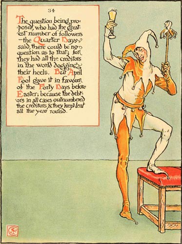 The question being proposed, who had the greatest number of followers—the Quarter Days said, there could be no question as to that; for they had all the creditors in the world dogging their heels. But April Fool gave it in favour of the Forty Days before Easter; because the debtors in all cases outnumbered the creditors, & they kept lent all the year round.