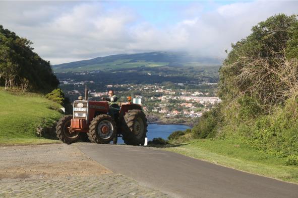 Из иллюминатора мне показалось, что изумрудный остров расчерчен чёрными каменными изгородями на правильные зелёные прямоугольники и узором напоминает юбку шотландку. И, проезжая на пикапе Луиса, я любовался этим «покрывалом», на котором паслась домашняя живность. Худосочные безрогие коровки с выменем и без, козы да лошадки не спеша пощипывали подножный корм. Встречающиеся джипы перевозили в открытых фургонах бидоны, канистры с водой и пушистых собак. Наш новый знакомый, судя по уверенному английскому, атлетичной фигуре с коротким седым ёжиком на голове, по продуманности действий был похож на отставного военного, что позднее подтвердилось фейсбуком — бывший пилот ВВС Португалии.
