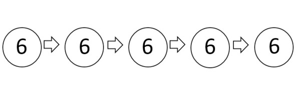 Каждый элемент цепочки имеет мощность шесть, то есть в единицу времени может обработать шесть единиц продукции.