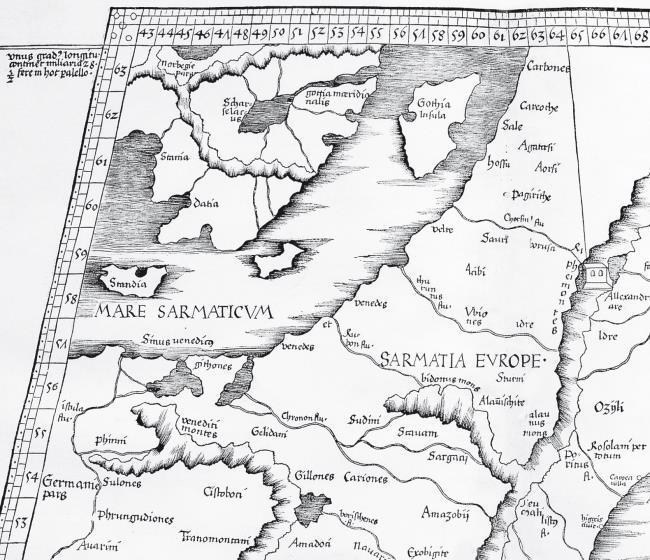 Остров Скандза и Сарматское море. Фрагмент карты Европы по «Географии» Клавдия Птолемея (1513)
