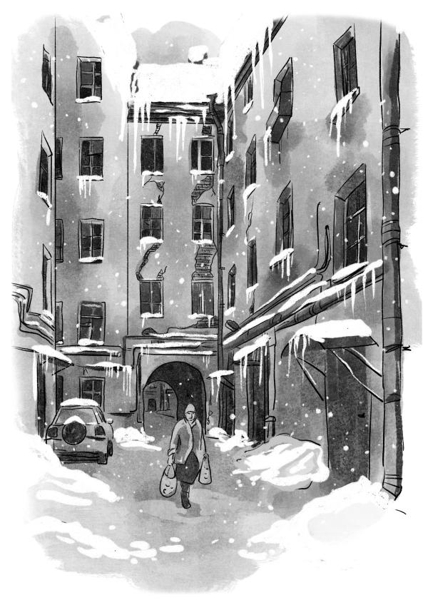 Лед под ногой хрустнул, разломившись на два ровных зеркальных кусочка, в которых отразилось серо-голубое небо первомайского Питера. Мария Ильинична чуть не соскользнула в глубокую лужу, растянувшуюся через весь двор-колодец. Она несла в каждой руке по тяжелой сетке с продуктами.