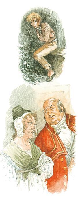 С этими словами она открыла боковую дверь и вытолкнула Оливера на крутую лестницу, ведущую в каменный подвал, на кухню. Сама она вошла вслед за мальчиком, оглядываясь в поисках еды. В конце концов Оливеру перепало на ужин то, чего не доела хозяйская собака.