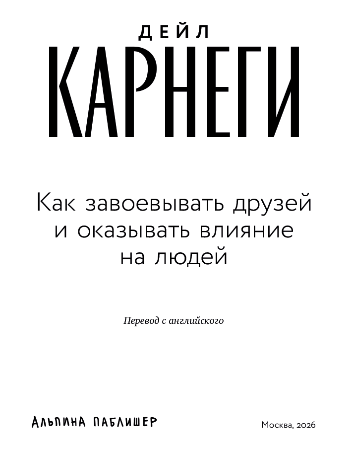 В этой книге и во всем, что делал Карнеги, его голос звучит с прежней мощью. Ежегодно тысячи людей по всему миру обучаются на курсах Карнеги, и число слушателей постоянно растет. А тысячам других книга «Как завоевывать друзей и оказывать влияние на людей» помогает обрести вдохновение и улучшить жизнь. Всем им мы предлагаем это переиздание, выверенное и усовершенствованное.