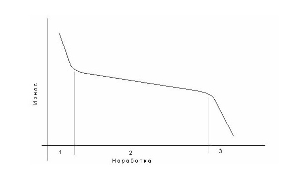 Глядя на полученную линию, мы приходим к кривой износа, так как она похожа на классическую кривую износа из теории надежности (рис. 5):