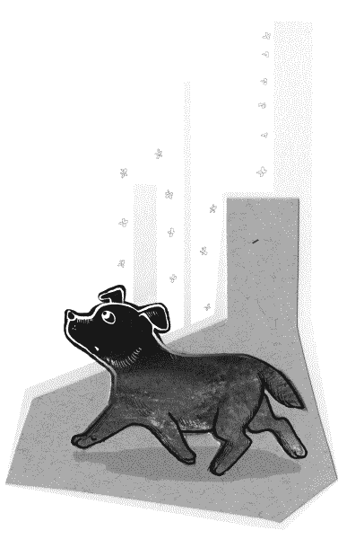 Задание 12. Из большой картонной коробки от бытовой техники сделайте барьер с прорезанной вертикальной щелью шириной 8 см. Пусть собака сядет перед щелью, а вы с другой стороны барьера покажите какое-нибудь лакомство. Положите его на пол, но так, чтобы она могла видеть приманку, но не могла достать ее лапой.