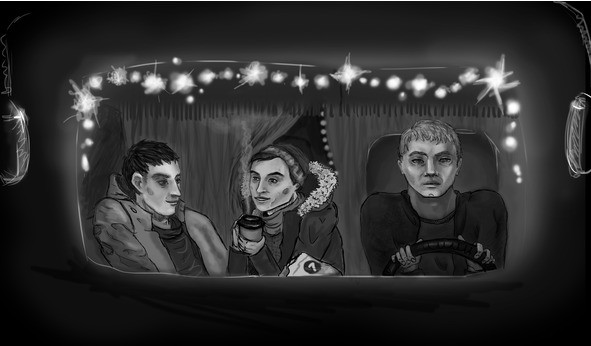 Наверное, на грани между суровостью и комичностью смотрелась фура, рассекающая светом своих фар ночную дорогу, грузно подпрыгивая на кочках под песню группы Muse — The Handler. И уж точно забавно и немного киношно выглядели три парня, воодушевленно орущие «Тихий огонёк моей души», «Дороги» и «Три белых коня» Ларисы Долиной, дабы добавить новогоднего настроения.