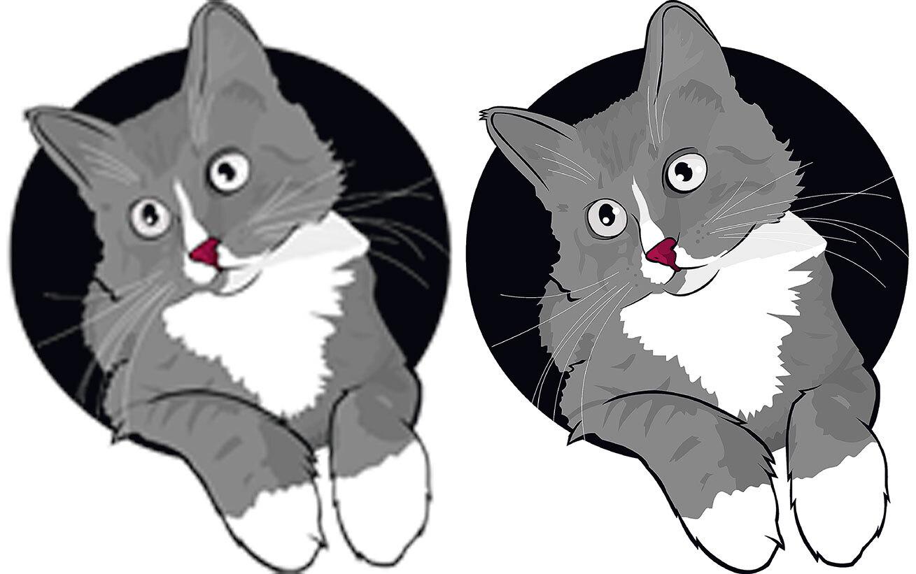 Сильно приближенное растровое изображение vs сильно приближенный рисунок того же размера, но в векторе