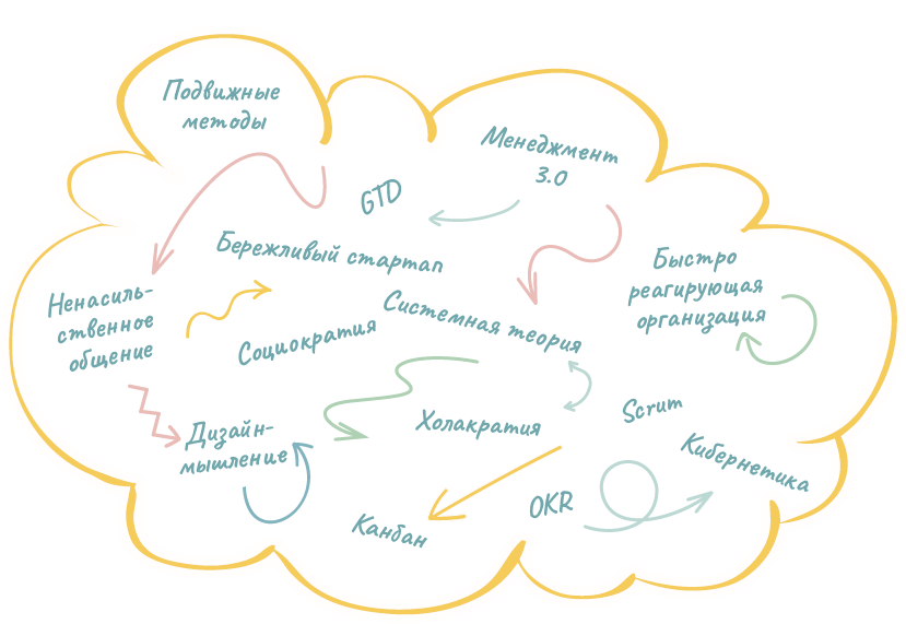 В последние годы нам пришлось много читать, примерять к себе и обсуждать с клиентами и партнерами проблемы успешной трансформации существующей системы. Этот процесс отличается сложностью и нелинейностью, и многим организациям, живущим старыми понятиями, трудно на него решиться. Зачастую они чувствуют, что их с головой захлестывает обилие новых терминов и инструментов, которыми жонглируют консультанты. Почему для самоорганизации важна гибкость? Должны ли все предприятия быть двурукими4, а их сотрудники — владеть так называемым дизайн-мышлением? Где применение холакратии действительно принесет новизну и пользу, а где лишь понапрасну осложнит обстановку?