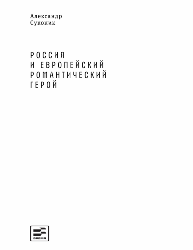 Россия и европейский романтический герой / Александр Суконик. — М. : Время, 2019. — (Диалог).