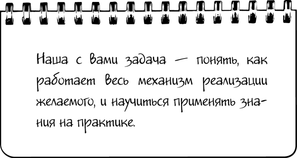 Речь идет о попытке упростить работающие модели. Вспомните, там сказано примерно так: «Мечтайте и визуализируйте, ваши мысленные импульсы будут посылаться в космос, и все желания исполнятся». Однако в фильме упущен важный момент: не сказано, что для исполнения мечты одной визуализации мало. Я знаю много людей, которые посмотрели фильм «Секрет» и действовали так, как в нем показано. Они пытались визуализировать свои мечты день, неделю, месяц и, к сожалению, ни к чему не пришли. Их жизнь существенным образом не изменилась.