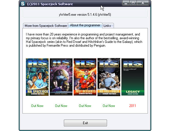 Кроме программы yWriter6, Симон Хейнс разработал множество других компьютерных программ, подходящих для писателей.