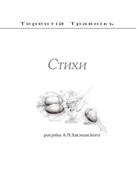 В поэтическое собрание «Стихи» вошли работы Терентiя Травнiка, созданные им в 2007 году. Лирика поэта согревает, излучает тепло и свет. Щедрая, доверительная и восприимчивая, она доброй своей частью обращена к природе, к ее бесценным дарам. Благодаря тонкому поэтическому чувству природы, силе пробуждения нашего внутреннего созерцания явлений, предметов, Терентiя Травнiка можно сравнить с Левитаном в поэзии. Пейзаж у поэта физически осязаем, он создается живыми, сочными мазками из его сердца.