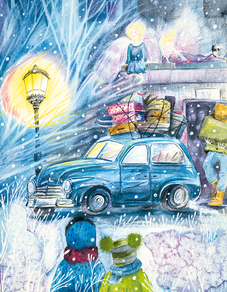 — Ничего, когда обратно поедут — я и пёрышком не шевельну, — заметил папин ангел. — Самому интересно, как он в багажник санки будет пристраивать.
