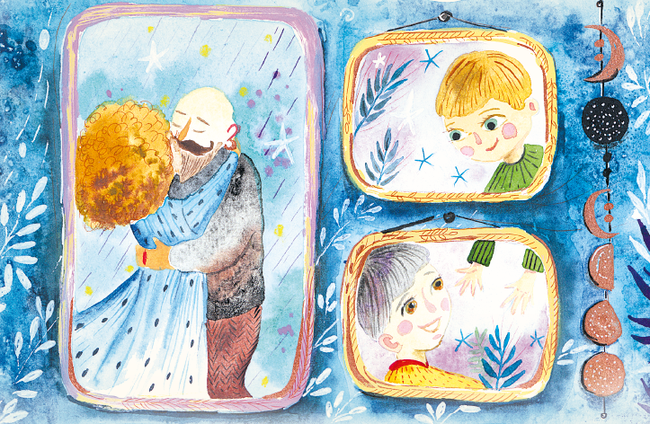 Бабушкин ангел вынул откуда-то маленькое сияющее воспоминание, похожее на золотое яблочное зёрнышко, и вложил в бабушкино сердце. Ей вдруг стало очень тепло. Она вспомнила, как была девчонкой с тощими косичками и перепачканным чернилами носом, как зимними вечерами вся её семья мастерила ватных зай цев для ёлки, как читали вслух рассказы Диккенса и ждали, когда наступит момент достать из шкафа коробку с волшебными стеклянными шарами…