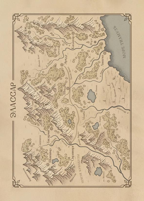 — Это легенда твоего края, слушай и не перебивай, — Саргон вновь поднял на Галлу свои миндалевидные светло-серые глаза, затем продолжил читать: — И сказала она сыновьям своим: «Я дала жизнь вам. Дайте ныне вы жизнь этому миру». Братья тотчас принялись за дело. Рештаретете положила руки на плечи своим сыновьям. Шамаш взмахнул рукой, и наполнился новорождённый мир, названный Элассаром, солнечным светом. И заискрились золотом реки и волны морские, и воздух потеплел. Взмахнул рукой Нергал. И сквозь камни начали пробиваться изумрудные травы, стволы деревьев, цветы. И наполнился воздух густым ароматом хвои. Затрепетали листья на тёплом ветру, заблагоухали цветы. Элассар увидел свою первую весну.