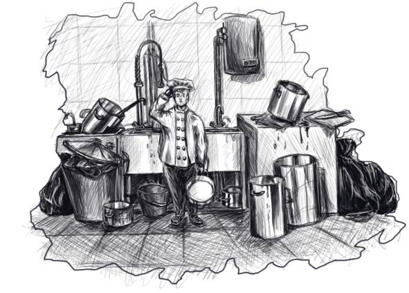 Катя попросила меня почистить ведро картофеля, и я остался наедине со своими мыслями, сидя на табуретке в маленьком складе с овощами. В голове было много вопросов. Если это действительно лучший ресторан в городе, то какой тогда худший? Почему, если ресторан хорошо работает, персоналу мало платят? Почему тут так грязно? Стоит ли мне тут оставаться?