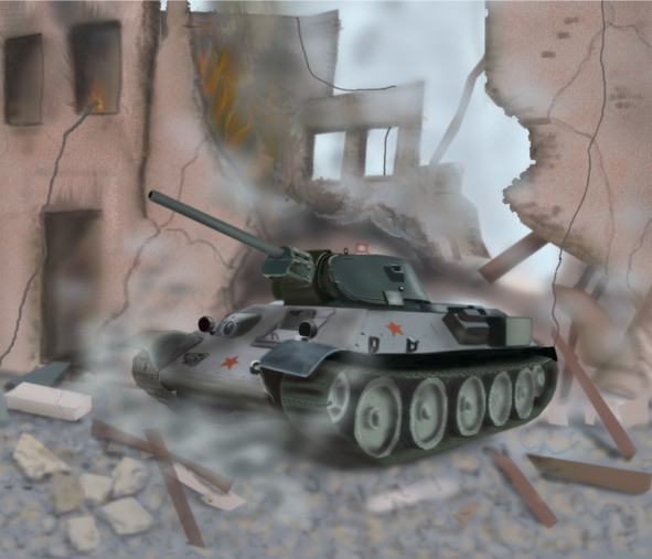 Тридцатьчетвёрка содрогнулась от близкого взрыва. Смотровую щель полностью закрыл ливень из каких-то обломков и комьев земли. Командир приподнялся, пытаясь осмотреться. Грянул второй взрыв. Создавалось ощущение, что по танку поддали огромной кувалдой по днищу. Машина и её экипаж были ещё живы и стальной зверь, развернувшись на вражеской траншее, грохнул залпом своего орудия. Ближний бункер, возле которого словно медведя обложили немецкие солдаты наш Т-34, треснул почти пополам от прямого попадания заряда. Тридцатьчетвёрка рванула вперёд, но один из германцев, вынырнувший откуда-то снизу, пропихнул под правую гусеницу здоровенный, похожий на каравай кругляк мины и побежал прочь. Пулемётная очередь переломила солдата пополам. Грянул взрыв. Стальной зверь, получив тяжелейшее ранение, тем не менее, был жив и продолжал сражаться. Экипаж вёл пулемётный огонь по едва различимым в дыму позициям врага. Атака немцев, похоже, захлебнулась, и экипаж, обездвиженный в своей боевой машине, продолжал вести бой, надеясь на идущее следом подкрепление. Развалины, находившиеся примерно в пятидесяти метрах от танка, походили на разбитый вдребезги кувшин с чудом уцелевшим донышком. Расчет солдат в камуфлированных маскхалатах тихонько выставил в пролом стены ствол крохотной, почти игрушечной пушки. На её стволе виднелась шишка надкалиберного снаряда. Тридцатьчетвёрка разворачивала башню вправо, когда крохотное орудие выплюнуло свой заряд по противнику [1]. Грохнул сильнейший взрыв. Вспышка ослепила механика-водителя танка. Жуткая боль, внезапная ослепительная вспышка, разрезавшая темноту пополам, крики горящих заживо товарищей и мгновенная темнота и тишина.