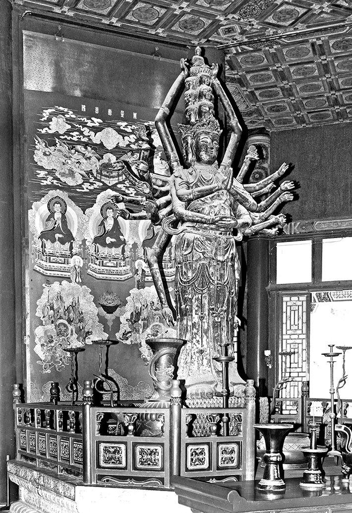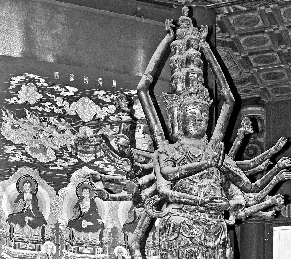 Рис. 26. Позолоченная бронзовая статуя «Тысячерукого Будды Гуань-юня» высотой 5 метров. Фотография 2009 года.