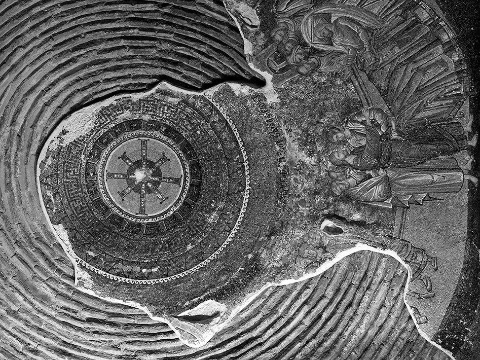 Рис. 35. Старинное христианское изображение восьмиконечного православного креста в виде колеса – восьмиконечная звезда, вписанная в круг. Подкупольная мозаика церкви Христа-Хора в Стамбуле. Фотография 2009 года.