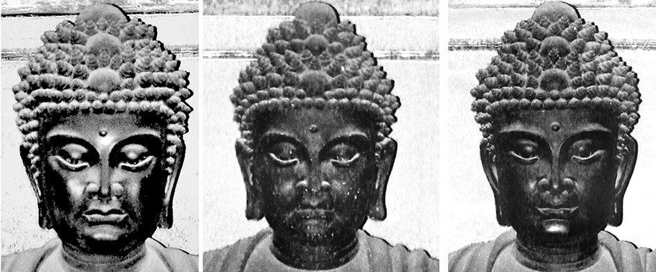 На рис. 16, рис. 17, рис. 18, рис. 19, рис. 20 показаны изваяния трех Будд, или, точнее, Будды в трех лицах («в трех состояниях»), в одном из буддийских храмов (восстановленного) Летнего дворца манжурских императоров в Пекине.