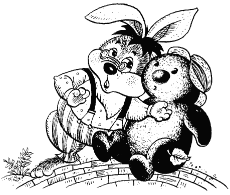 Вот Кролик отскочил назад, размахнулся и как стукнет Чучелко по голове кулаком! Кулак прилип, никак не оторвёшь его: смола держит крепко.