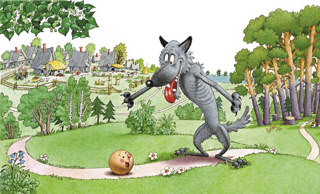 Катится колобок по тропинке в лесу, а навстречу ему серый волк: