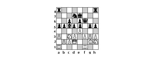 4….h7 — h6 5.Cg5:f6 Фd8:f6 6.Kb1 — c3, если белые не хотели допустить движение пешек ферзевого фланга они могли продолжить 6.a4