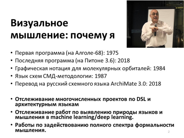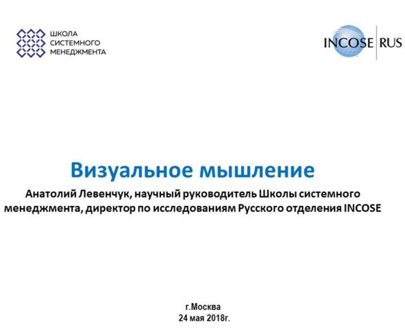 И сегодня прекрасный день для того, чтобы отстроиться от того, чем занимается Анатолий Игоревич, и сказать, что у нас свое есть направление и мы считаем по-другому. Действительно, если для человека возможно системное мышление, то методы, которыми ставит Анатолий Игоревич системное мышление, отличаются от тех, которыми занимаемся мы. А наше системное мышление основано на графических методах. В общем, введя такую преамбулу к выступлению, я передаю слово и больше не вмешиваюсь, и выполняю только роль ведущего. Повторяю, очень рад, что у нас состоится такая встреча и дискуссия.