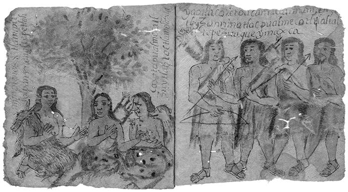 пернатый змей слева и бог ветра Эхекатль справа Кодекс Лауда, XVI в.