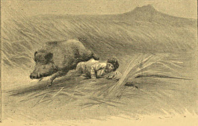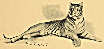 Sterndale relates a curious legend about a well-known man-eating panther that killed over two hundred people in three years, and was supposed to be a kind of Wehr-wolf. Panthers have often been ridden down and speared, but two or three men are required for this amusement, as on the first horse overtaking it the panther will at once crouch and endeavour to spring on the horse’s back as he passes. The second horseman should, therefore, be close up ready to cut in at once; care should be taken to get the first spear home in a good place, and the panther should be held down if possible, till despatched by the spears of the rest of the party. It is foolhardiness for a single man to attempt it. Panthers climb readily, and many have been shot out of trees where they have taken refuge, or been found lying asleep on a branch. Forsyth considers that many panthers escape in drives by taking to trees, and mentions finding the body of a child, that had been killed by a panther, lodged in a forked bough.