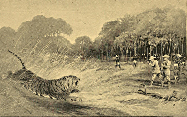 The troopers of the Central Indian Horse used often to kill panthers in the rainy season by tracking them into patches of sugar-cane, which they surrounded with men armed with spears and swords (guns were naturally not allowed), and then hunted the beast out with a pack of dogs. When panthers or bears were marked down in jungle too big to be surrounded, the guns were posted in trees, and the pack laid on to hunt the beasts up.