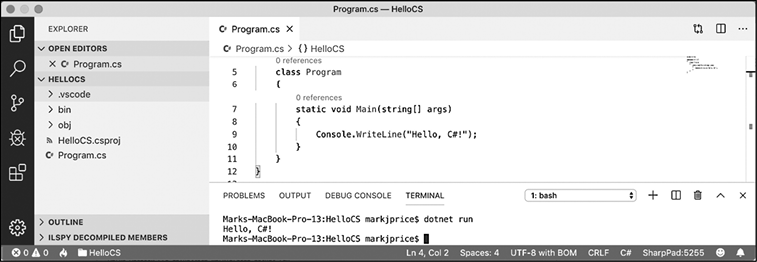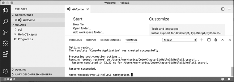 Глава 1 «Привет, C#! Здравствуй, .NET Core!» посвящена настройке среды разработки и использованию Visual Studio Code для разработки простейшего приложения с помощью языка C# и .NET. Вы узнаете, как писать и компилировать код в любой из операционных систем: Windows, macOS и Linux. Вдобавок вы найдете сведения о том, где лучше всего искать справочную информацию.
