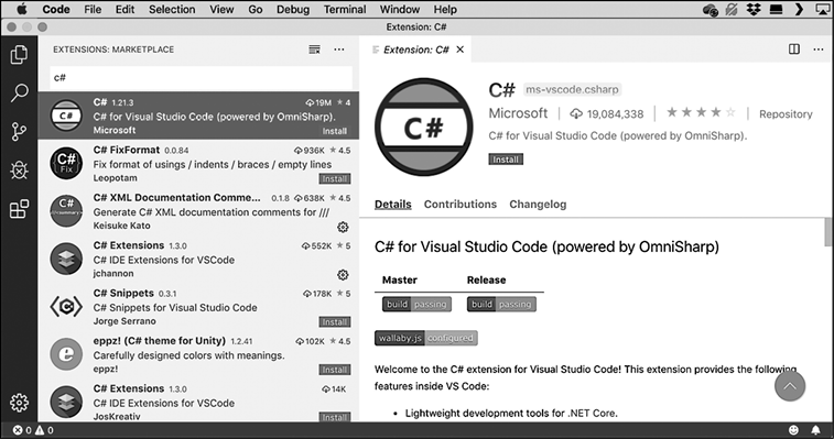Visual Studio Code — хороший выбор для современной кросс-платформенной разработки, поскольку имеет обширный и развивающийся набор расширений для поддержки многих языков, помимо C#. И, будучи кросс-платформенной и простой средой разработки, Visual Studio Code может быть установлена на всех платформах, на которых будут установлены ваши приложения, для выполнения быстрых правок и прочих задач.