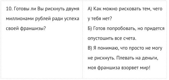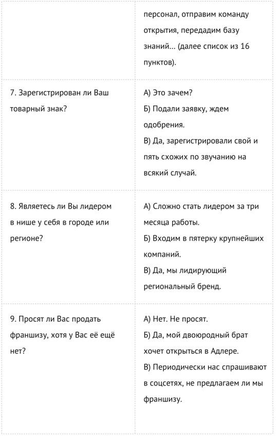 Список можно продолжать бесконечно. Купив такую франшизу, человек получает несколько видеоинструкций и файлы с макетами. Как правило, бизнес по таким франшизам живет недолго и заканчивается весьма плачевно. Я взялся за написание книги, чтобы помочь одним предпринимателям делать качественные франшизы, а других научить отличать качественную франшизу от откровенного лохотрона.