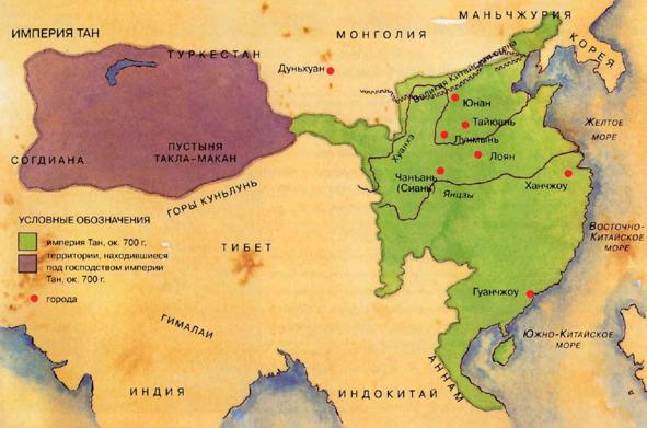 Новая череда войн, укрупнений, дроблений царств, приводит к появлению великой, цветущей Империи Тан (636—907) на востоке современного Китая. Династия эта контролирует часть Средней Азии, Согдиану, территории нынешних Таджикистана, Туркменистана и Узбекистана. Выходец одной из областей, пограничный наместник на службе Желтого императора Ань Лушань убеждает монарха заменить офицеров титульной нации при дворе на преданных лично согдианцу наемников-степняков. Дальнейший ход событий предугадать не так уж сложно. Ань Лушань почти беспрепятственно, используя ресурсы огромного государства формирует завязанную только на него армию. Когда маски оказываются сброшены, коренным китайцам остается только печально развести руками. Коварный пришелец осуществляет поход на столицу Чанъань (ныне провинциальный Сиань, месторасположение знаменитой терракотовой армии Шихуанди).