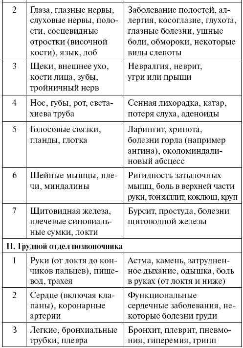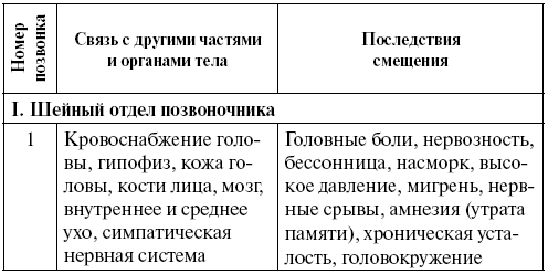 Внимательно изучите табл. 1. Может быть, болезни, которые вы безуспешно лечите, явились следствием смещения того или иного отдела позвоночника.