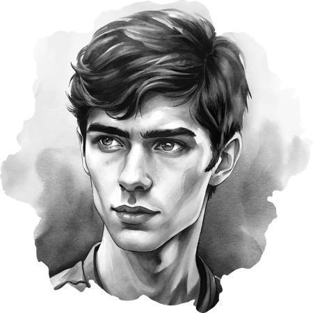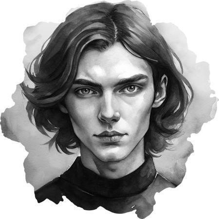 Внешность: бледная кожа, сумрачный взгляд, темные, рвано стриженные волосы до плеч с белыми прядками на макушке, стильный, но в одежде предпочитает только черный цвет