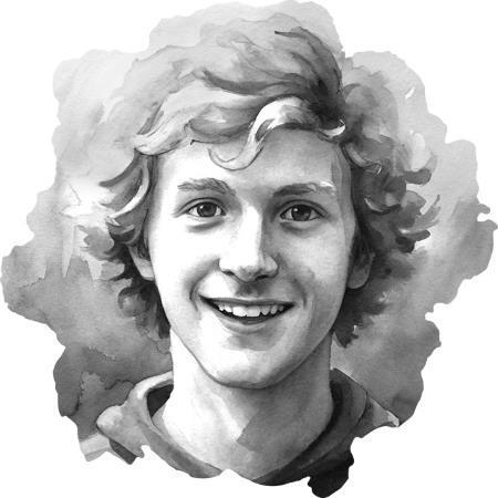 Внешность: высокий, со светлыми кудрями, есть любимая синяя толстовка, которую носит почти не снимая