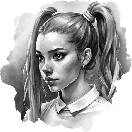 Внешность: ярко-рыжие волосы собирает в высокий хвост, а несколько прядей заплетает в тонкие косички с разноцветными резинками на концах, с удовольствием носит мужские рубашки, которые таскает у брата
