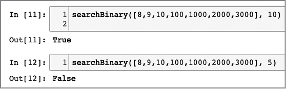 Определив функцию, мы переходим к поиску определенного элемента в строках 11 и 12. Алгоритм бинарного поиска более подробно обсуждается в главе 3.