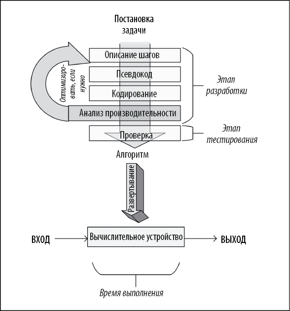 Различные этапы разработки, развертывания и, наконец, использования алгоритма проиллюстрированы на следующей диаграмме (рис. 1.1).