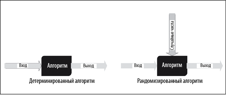 В случае детерминированных алгоритмов конкретные входные данные всегда порождают одинаковые выходные данные. Но для ряда классов алгоритмов в качестве входных данных используется последовательность случайных чисел, что делает выходные данные разными при каждом запуске алгоритма. Алгоритм k-средних, который подробно описан в главе 6, является хорошим примером (рис. 1.12).