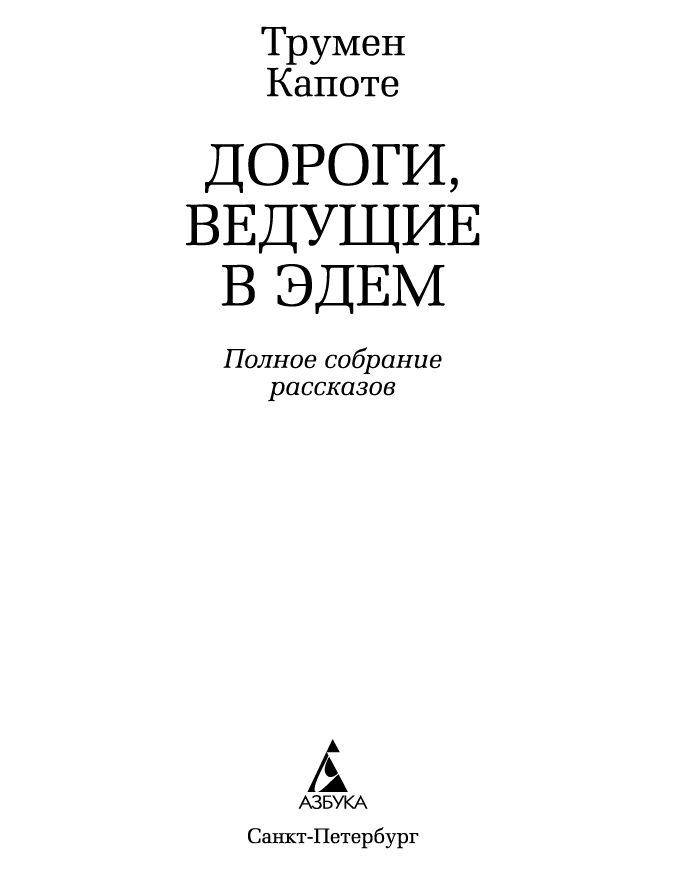 Дороги, ведущие в Эдем. Полное собрание рассказов / Трумен Капоте ; пер. с англ. О. Алякринского, В. Бабкова, В. Голышева и др. — СПб. : Азбука, Азбука-Аттикус, 2022. — (Азбука-бестселлер).