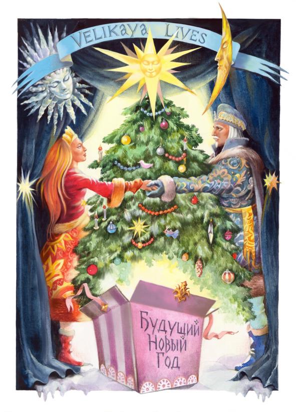 К этому дню, готовилась и Зима, наряжала свою ледяную ёлку странными, удивительно красивыми игрушками. Для этого, Зима, выдергивала из пространства вселенной одну из планет, которая подобно снежку, помещалась в ее ладони, и, долго сотрясала ее до тех пор, пока шарик не начинал светиться изнутри неоновым светом. Тогда Зима привязывала к шарику тоненькую кудельку, подвешивая его на дерево. Шарик крутился на веревочке, ярко сиял огоньком праздничной гирлянды, а Зима снова ныряла рукой в пространство, не глядя, на ощупь, срывала для своей елки еще одну бирюльку.